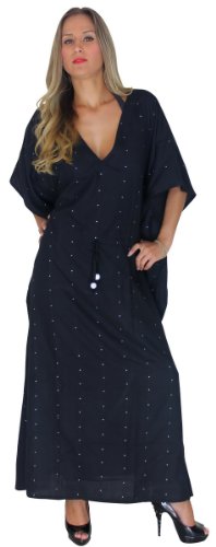 Black v-cou Sequin brodé Taille Plus longtempsue Kaftan Caftan. ligne de cou sobre