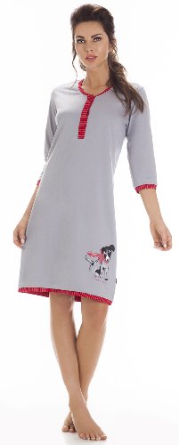 Cornette ® - Chemise de nuit pour Femmes à la mode en 100% Coton (Gris, XL)