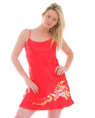 Nuisette courte en soie peinte à la main - taille: L - couleur: rouge