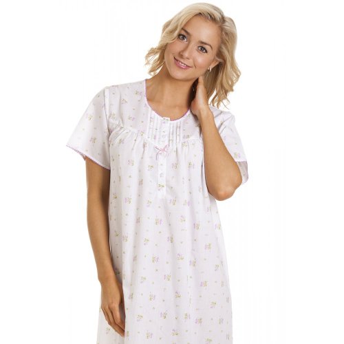 - Chemise de nuit à manches courtes rehaussée d'un motif floral rose.